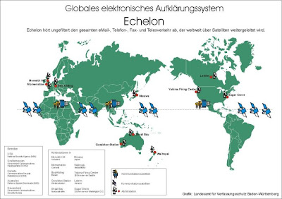 O sistema «Echelon» serve para a interceptação mundial de telecomunicações - correio electrónico, fax, telemóveis, sms e telexes - e é dirigido pela Agência de Segurança Nacional dos Estados Unidos da América, beneficiando ainda da colaboração e participação de agências governamentais do Reino Unido, da Austrália, do Canadá e da Nova Zelândia.