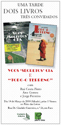 A apresentação do livro teve lugar no Pátio de Letras, conforme anunciado anteriormente no Blog de Informação.Palavras a reter:O autor do prefácio, Dr. Jorge Ferreira, afirmou que existe censura em Portugal.Explicou que a censura hoje praticada sobre o trabalho dos jornalistas já não é feita com «lápis azul», mas através da censura «de gaveta», onde acabam invariavelmente as investigações jornalísticas sobre temas que ponham em causa certas condutas ou omissões de pessoas influentes da democracia portuguesa - desde que o assunto não tenha já sido denunciado por outros órgãos de comunicação social -.Segundo o Advogado e ex-Deputado, agora existe MEDO em Portugal.O Dr. Rui Costa Pinto, jornalista e autor do livro, além de ter referido aspectos relacionados com a génese e o teor do seu trabalho jornalístico documentado na obra, manifestou interesse pelo desfecho do inquérito aberto pelo Procurador-Geral da República, relativo aos factos sucedidos em Portugal no âmbito dos «voos da CIA», em que cidadãos estrangeiros raptados pass(e)aram por solo português, estando sujeitos a tratamento desumano, sendo destinados a Guantánamo, para serem torturados.A este respeito destacou a circunstância do P.G.R. já ter anunciado quatro datas-limite diferentes para a prolação do despacho final (a última das quais ocorreu no passado mês de Fevereiro), que não foram respeitadas, apesar de ter revelado, igualmente, que as diligências de investigação já foram todas realizadas.*